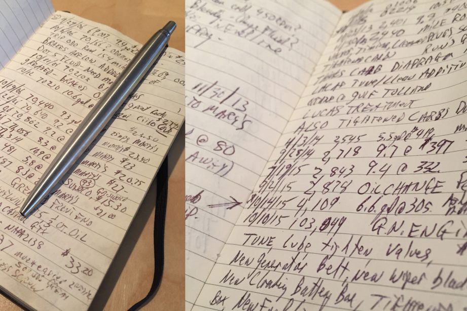 - Documented mileage and history (see photo of leather bond moleskin book with notes)