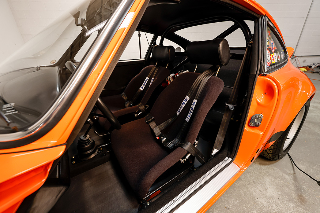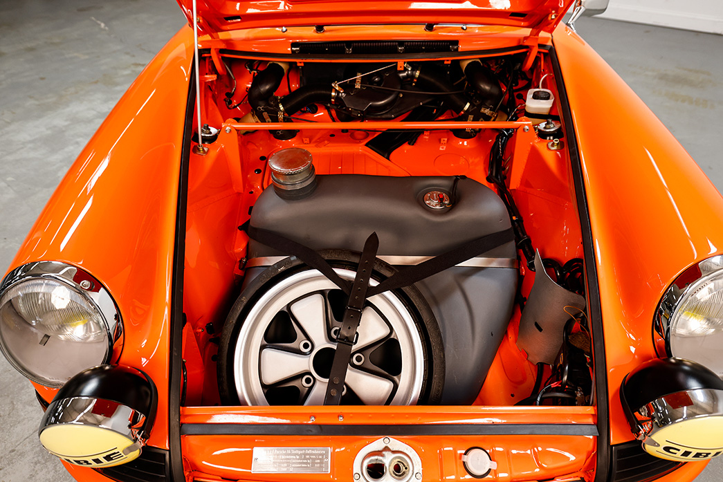 One of the best Porsche RS tributes I have ever seen is the Gulf orange example recently completed at Automobile Associates of Canton. No expense was spared in recreating one of the most dynamic cars Porsche has ever built: the 1973 Carrera RS. All the details are meticulously attended to, including a genuine 911/83 RS 2.7MFI engine, an aluminum hood, lightweight windows, and numerous NOS (New Old Stock) RS parts sourced from around the world.